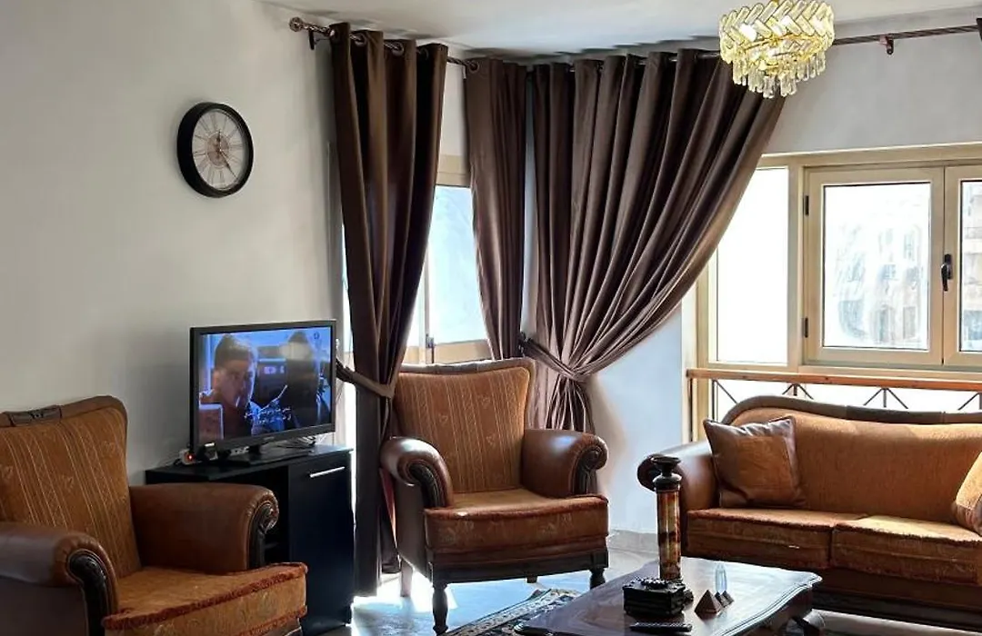 Cozy Room In Cairo has a terrace and a seating area, and comforts such as a washing machine. This apartment offers guests the convenient feature of bath sheets and slippers in the bathroom. A spa bathtub, a separate toilet, and a shower can also be found.